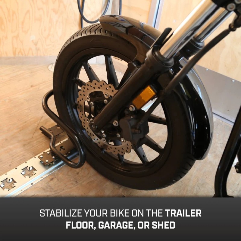 - STABILIZE YOUR BIKE Wheel chock helps stabilize the front or rear wheel of your motorcycle during transportation; To properly secure your motorcycle, always use with tie down straps