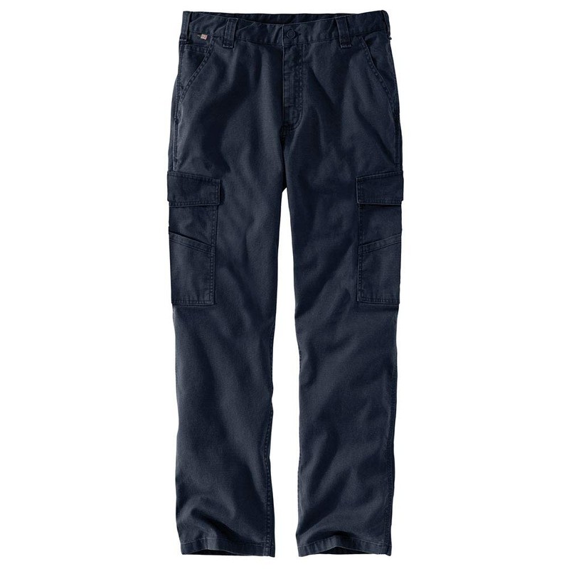 Carhartt Men's Flame-Resistant Rugged Flex Relaxed Fit Canvas Cargo Pant, Navy, 36 x 32