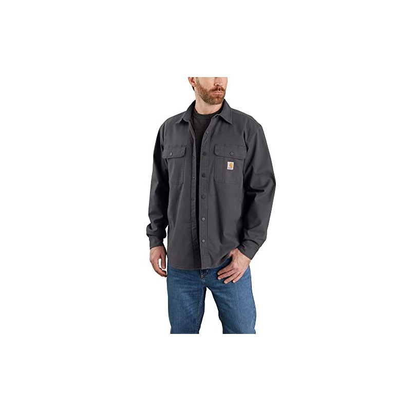 Carhartt Men's Rugged Flex Relaxed Fit Canvas Fleece Lined Shirt Jac, Shadow, X-Large
