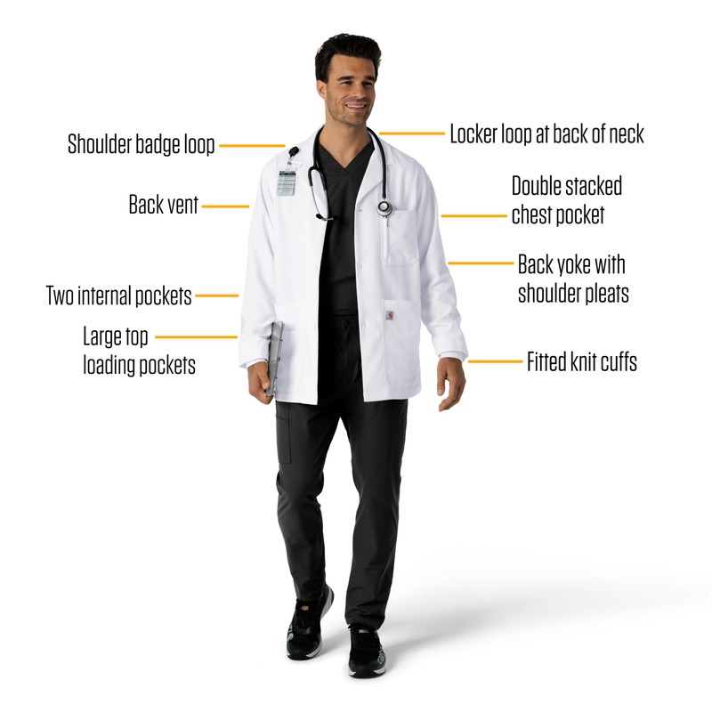 Carhartt Scrubs C71005 Modern Fit Consultation Lab Coat - Small Regular - White