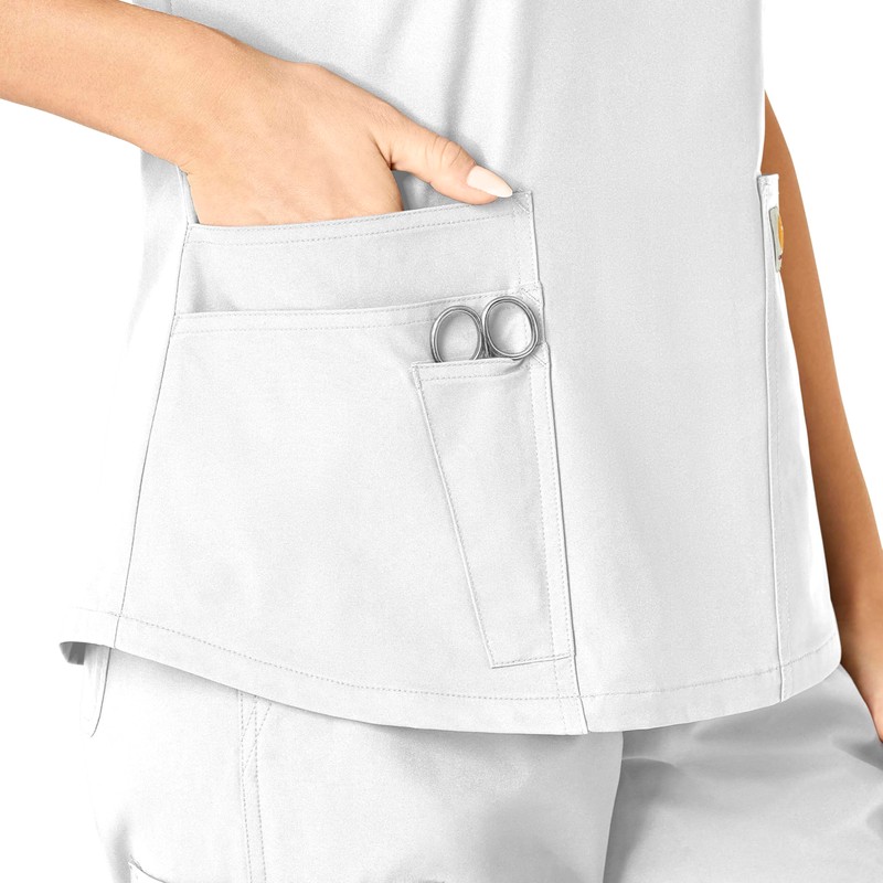 Carhartt Women's Force V-Neck 5-Pocket Top, White, Small