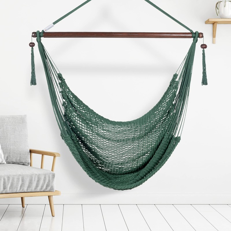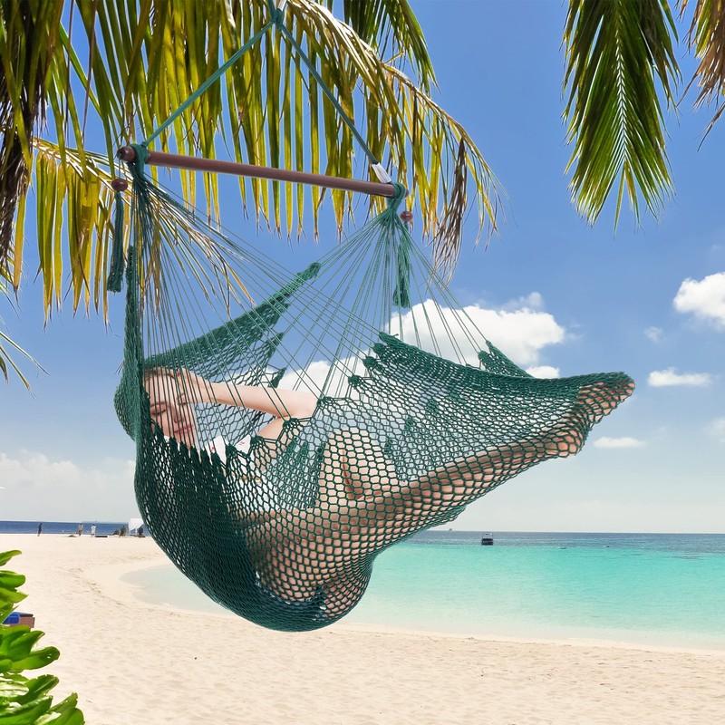 - 【PREMIUM MATERIALS】The soft-spun, weather resistant polyester cords used in our hammock chairs feel just as luxurious as cotton while offering unparalleled durability. Our spreader bars are made from 100% hardwood and are finished with a marine-grade varnish.
