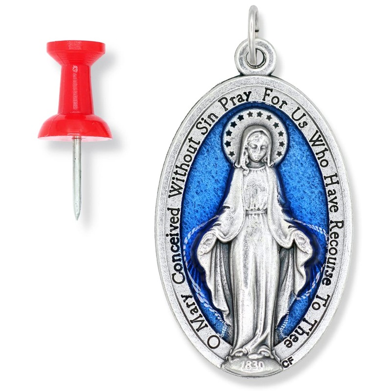 - LARGE SIZE - Measuring 1 3/4" in height, this large Mother Mary pendant is perfect for a Catholic miraculous medal necklace, keychains, and more!