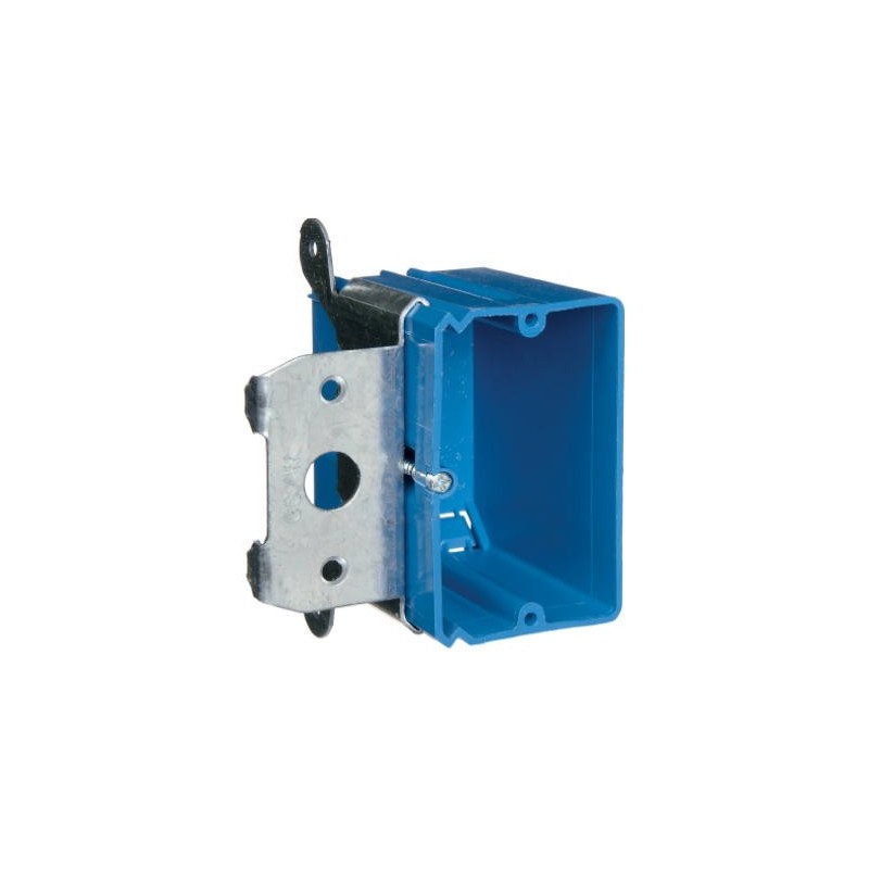 Single Gang Adjust-A-Box, Allows Installer To Adjust Box To Any Thickness, 21 CUIN Capacity, Comes Preset At 1/2", To Install Clip Included Bracket Onto Any Stud, Turning The Screw Adjusts Box In Or Out To Make It Flush With Any Wall Covering, Patented Design, UL Listed.
