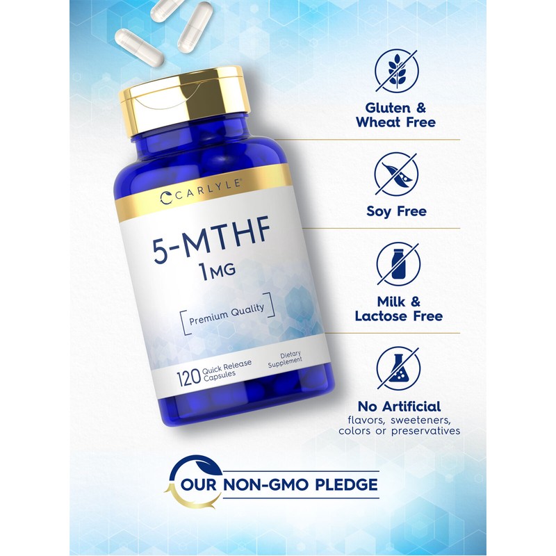 Carlyle 5-MTHF Supplement 1mg | 120 Capsules | L-Methylfolate | Non-GMO | by Carlyle