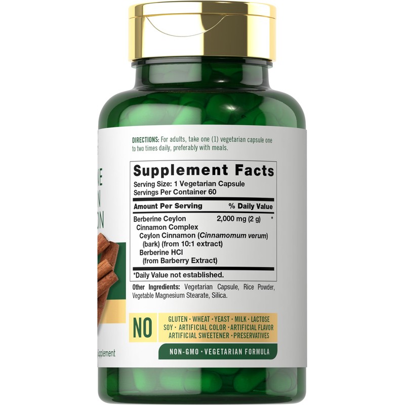 - VEGETARIAN CAPSULES: Each vegetarian capsule delivers 2,000 mg of Berberine Ceylon Cinnamon Complex