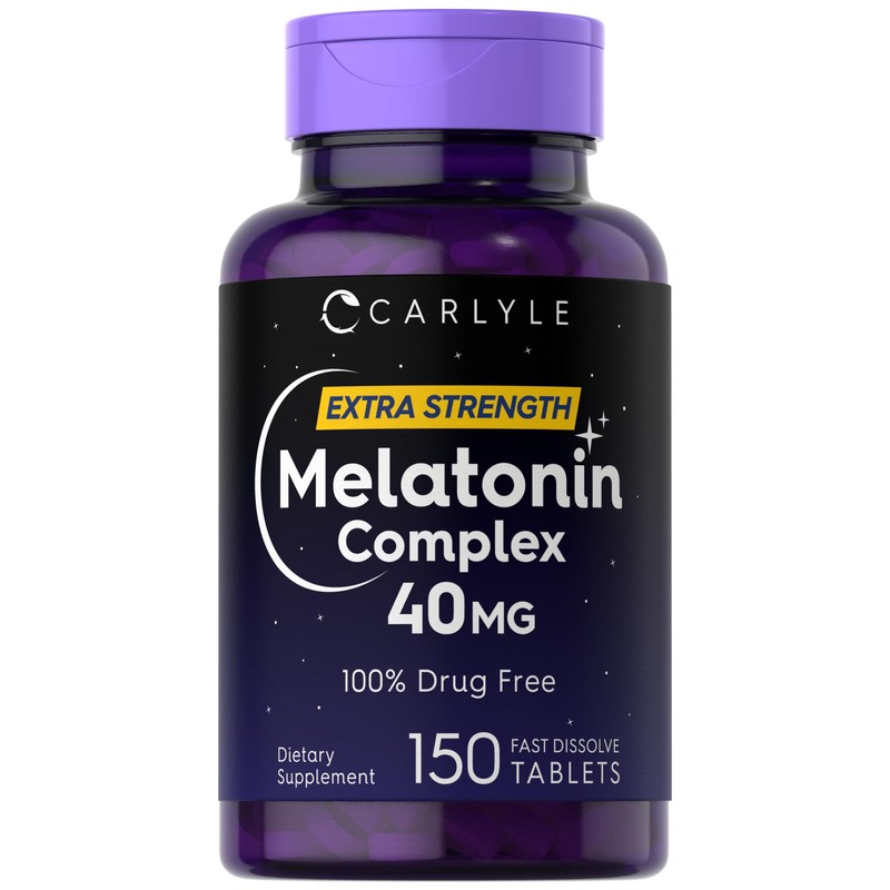 Carlyle Melatonin 40mg Complex | 150 Fast Dissolve Tablets | Extra Strength Support | with Ashwagandha and Chamomile | Vegetarian, Non-GMO, Gluten Free Supplement