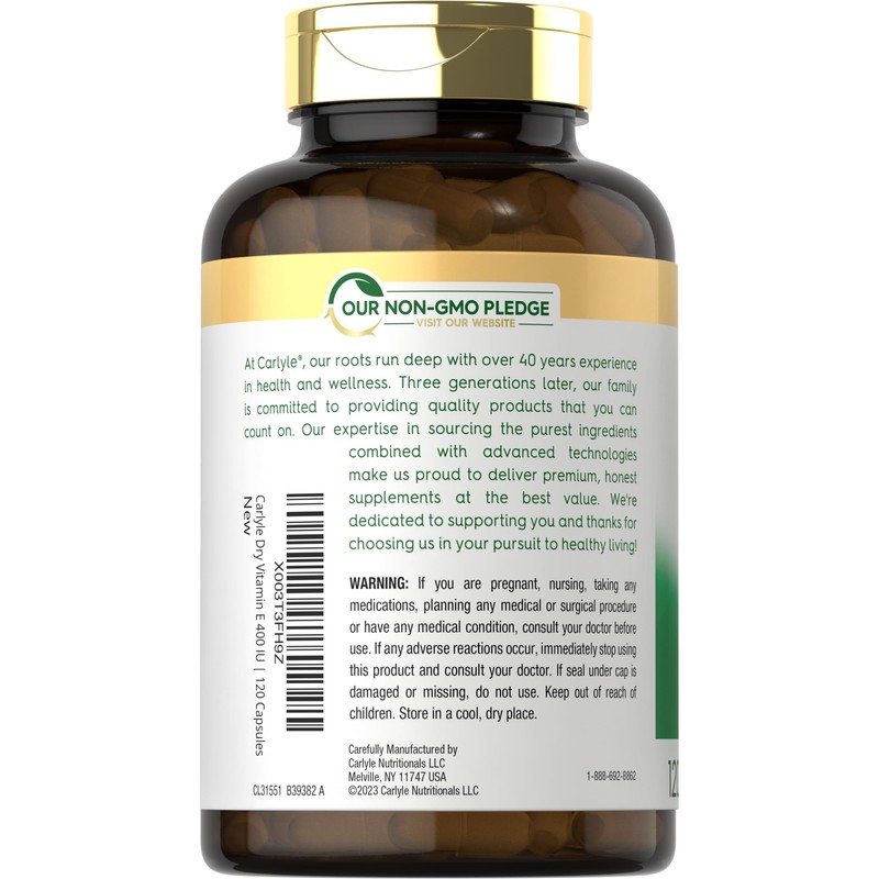 Our expertise in sourcing the purest ingredients combined with advanced technologies makes us proud to deliver premium, honest supplements at the best value. Carlyle Dry Vitamin E is a testament to our commitment to excellence, made with powerful ingredients rooted in wellness. Thanks for choosing us in your pursuit of living healthy.