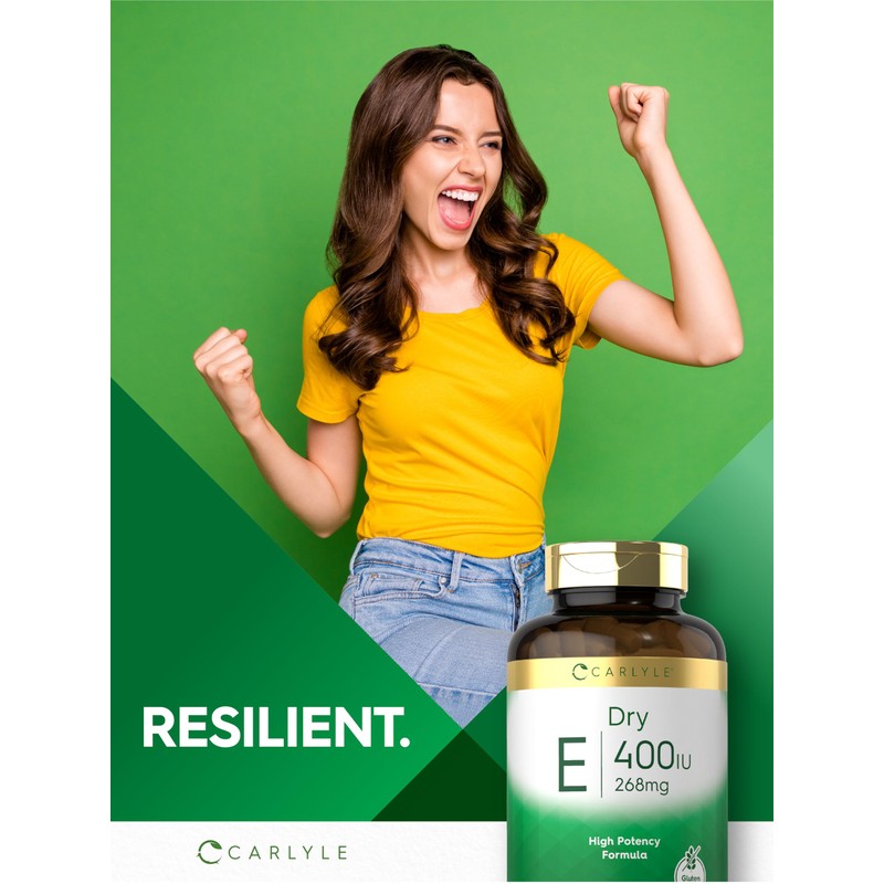 At Carlyle, our Dry Vitamin E supplement provides superior support from this antioxidant. Each serving delivers 400 IU (268 mg) of Vitamin E, which is 1,787% of your daily value! This Vitamin E (as d-Alpha Tocopheryl Succinate) supplement is made with no artificial flavor or sweetener, making this formula a premium option for men and women everywhere!