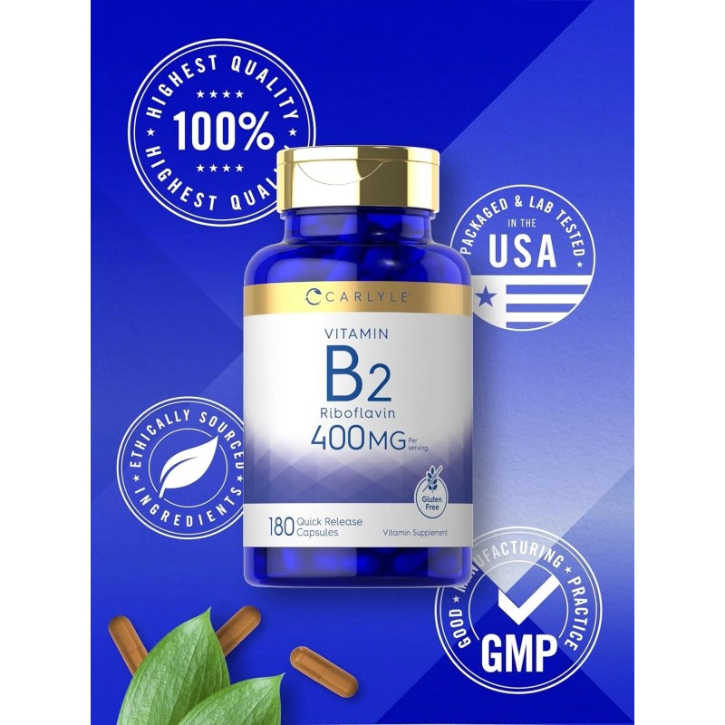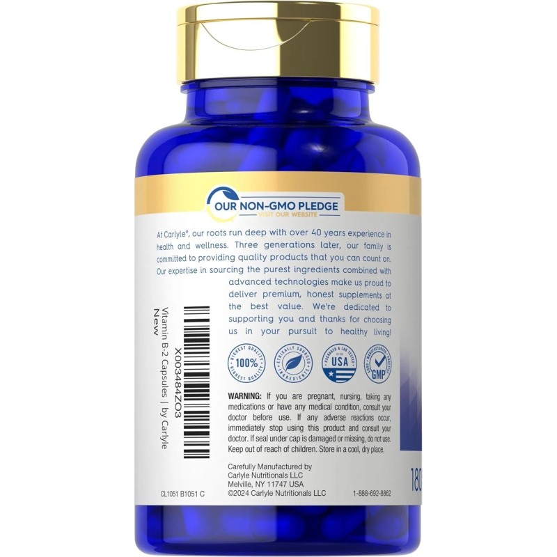 Carlyle Vitamin B-2 400mg 180 Count Non-GMO Gluten Free Supplement B2 Riboflavin