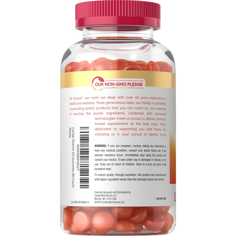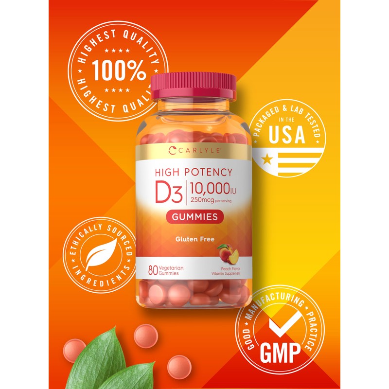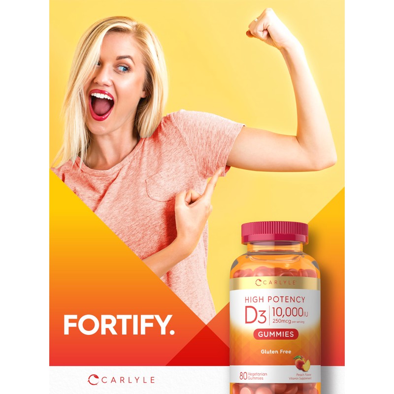 Carlyle Vitamin D3 10000iu Gummies for Adults | 80 Count | Peach Flavored Gummy | High Potency for Women & Men | Vegetarian, Non-GMO, Gluten Free Supplement