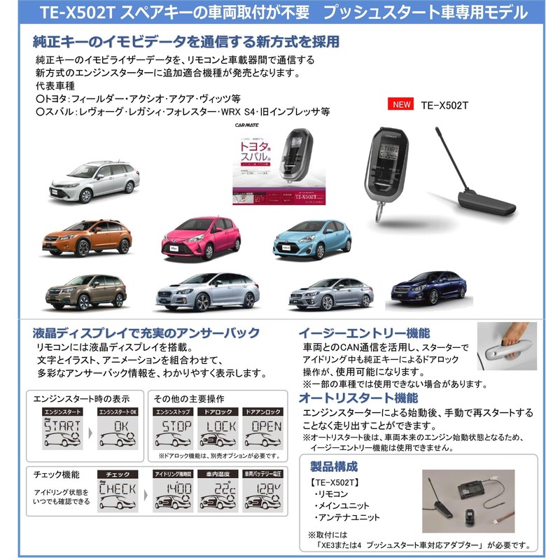 Carmate TE-X502T Engine Starter, Push-Start Car, No Spare Key Vehicle Installation Required