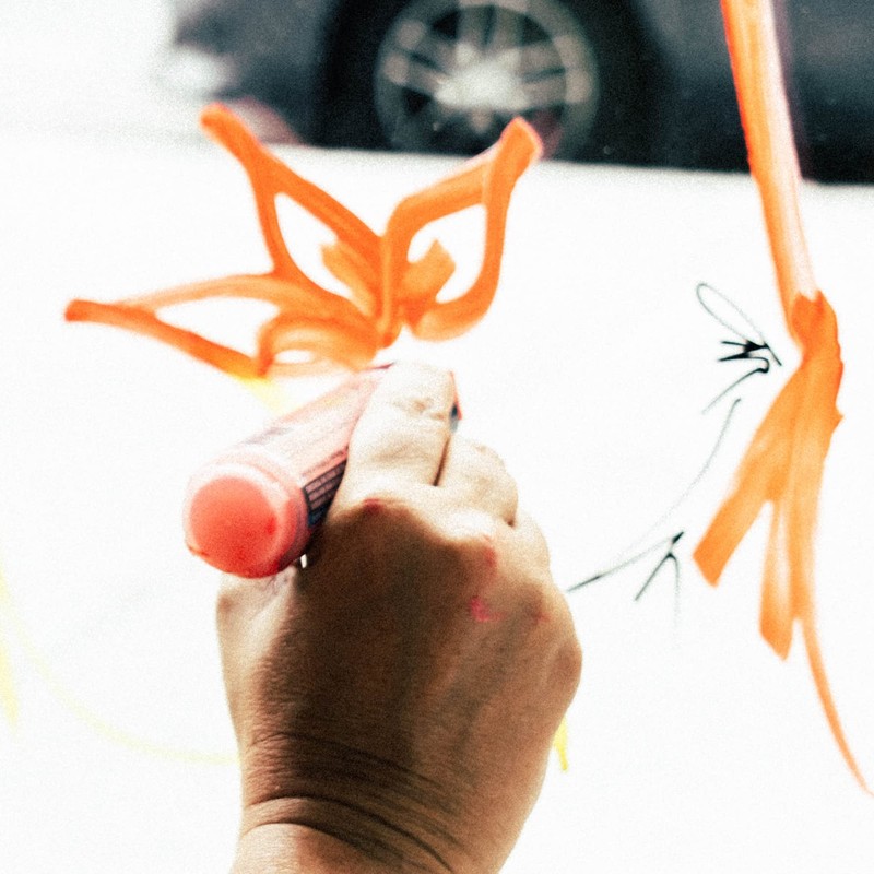- GLASS PAINT MARKER - This marker applies vivid paint to create artwork on restaurant windows, car windshields and other non-porous flat surfaces. This temporary paint marker dries quickly and is removable from non-porous surfaces with a damp cloth and glass cleaner.