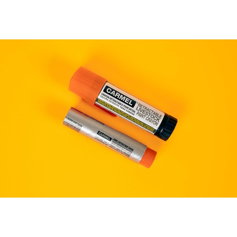 Carmel Retractable Livestock Crayon, Box of 12 (Orange), Livestock Marker for Long-Lasting and Weather Resistant Animal Identification, Livestock Marker to Mark Wet and Dry Livestock