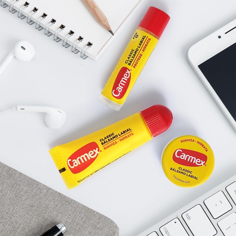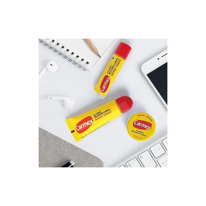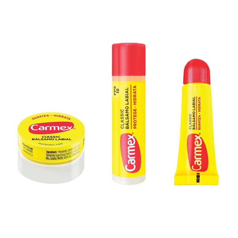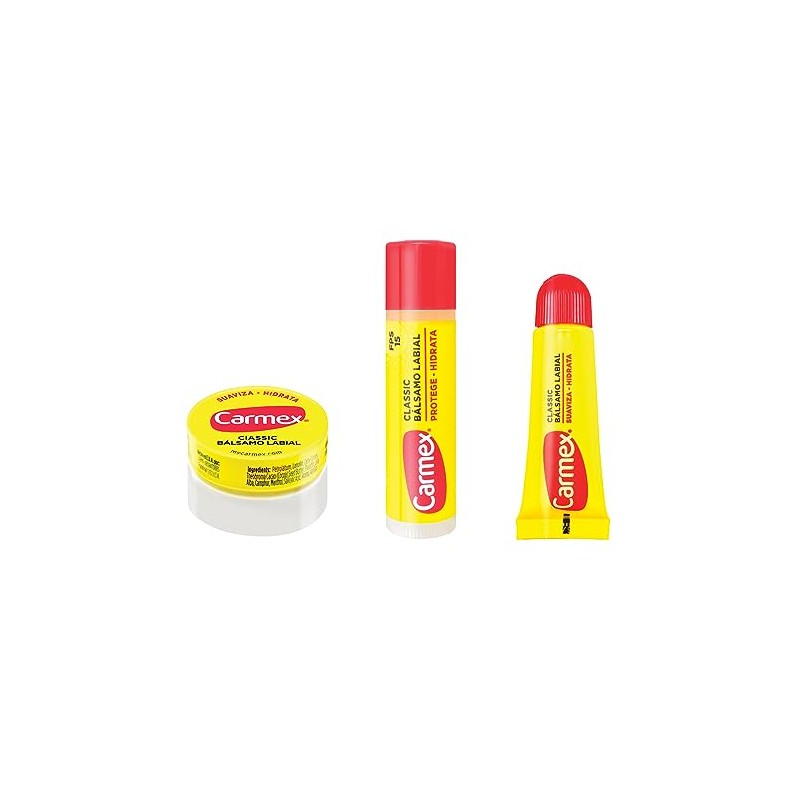 Carmex, Tripack Bálsamo Labial Cassic (Tarro, Barra, Tubo), para Labios secos y Agrietados, Protege y Suaviza, 2 pz