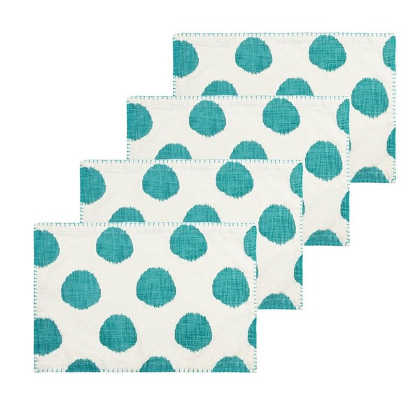 carol & frank Dot 14'' X 20'' Lagoon Cotton Reversible Machine Washable Placemat Set of 4 Rectangular Placemat Set of 4 Lagoon