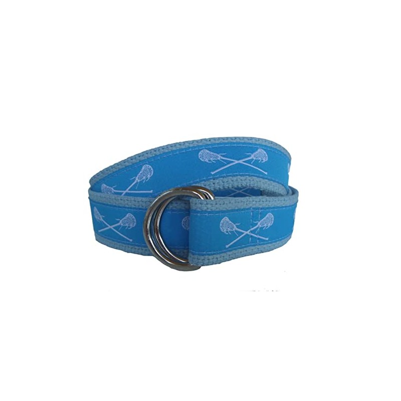 Carolina Blue Lacrosse Ribbon D-Ring Belt Polished Steel D-Ring 28 Khaki