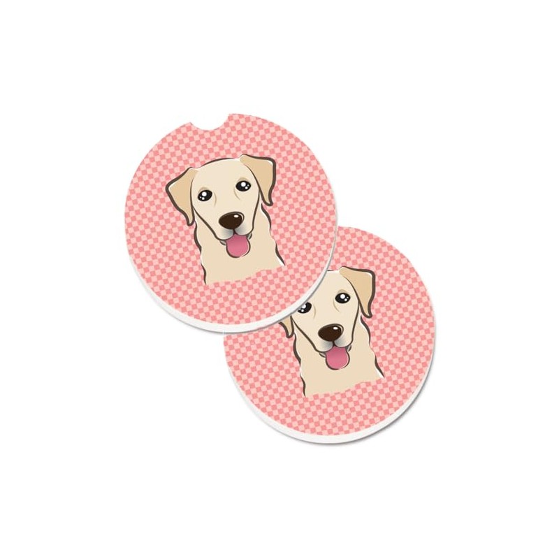 Caroline's Treasures Checkerboard Pink Golden Retriever Set of 2 Cup Holder Car Coasters BB1252CARC, 2.56, Multicolor