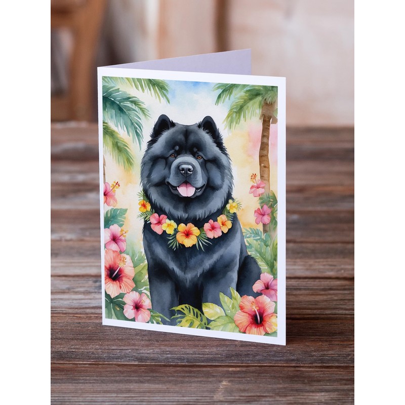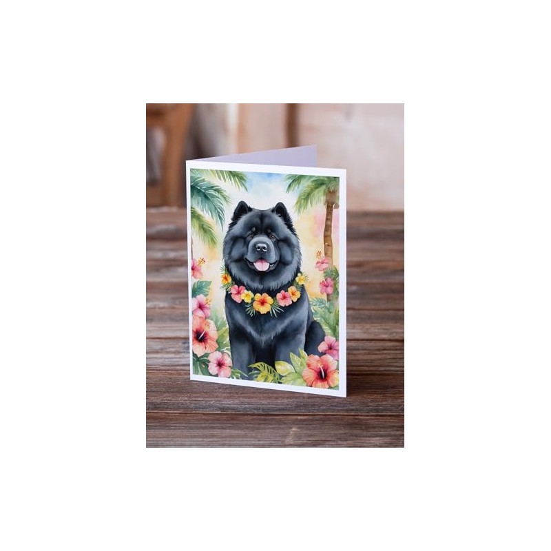 Caroline's Treasures Chow Chow Luau Greeting Cards Pack of 8 Blank Cards with Envelopes Whimsical A7 Size 5x7 Blank Note Cards