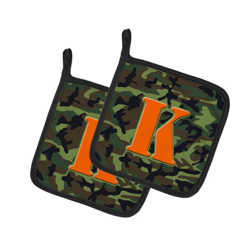 Caroline's Treasures CJ1030-KPTHD Letter K Monogram - Camo Green Pair of Pot Holders Kitchen Heat Resistant Pot Holders Sets Oven Hot Pads for Cooking Baking BBQ, 7 1/2 x 7 1/2