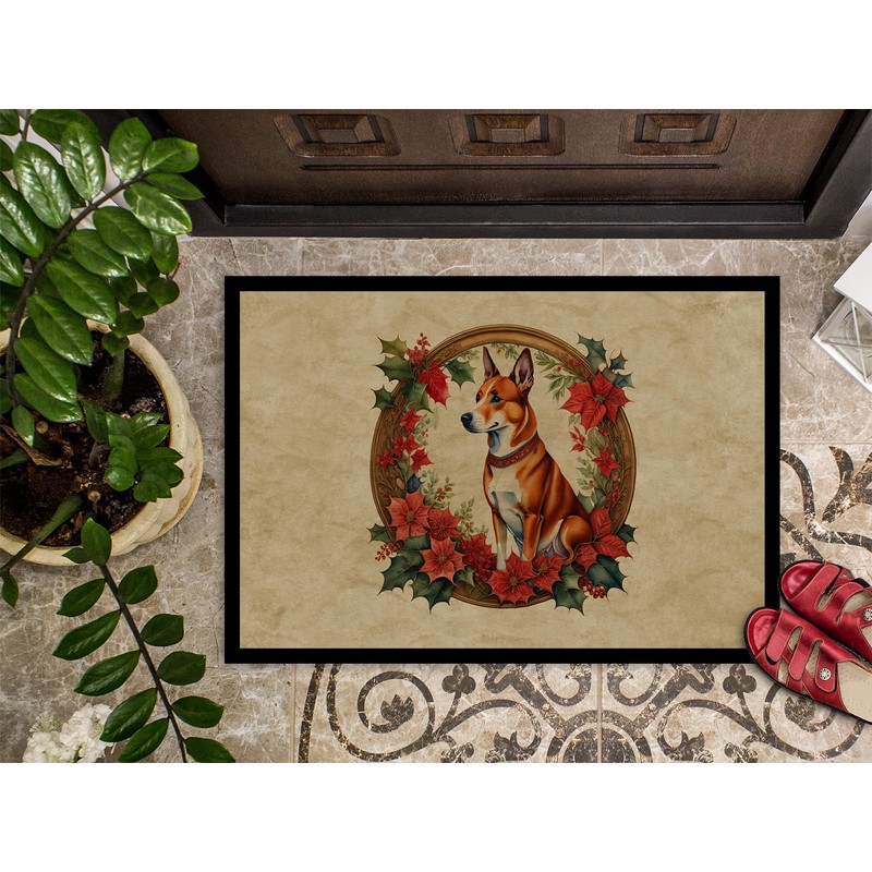 Caroline's Treasures DAC2311MAT Basenji Christmas Flowers Doormat Front Door Mat Indoor Outdoor Rugs for Entryway, Non Slip Washable Low Pile, 18H X 27W