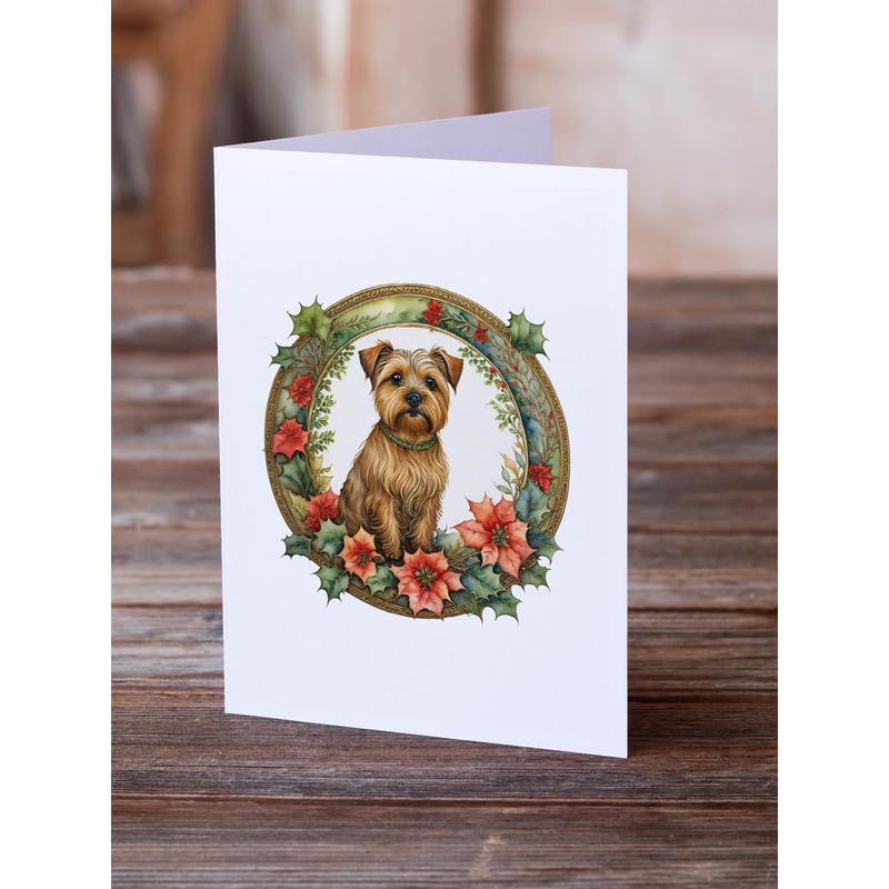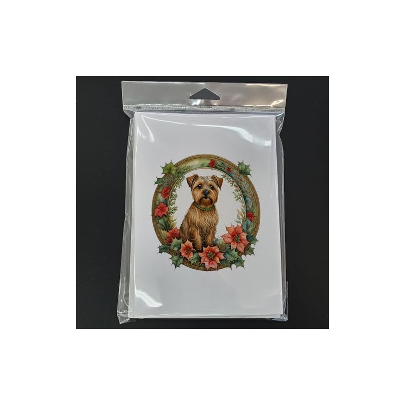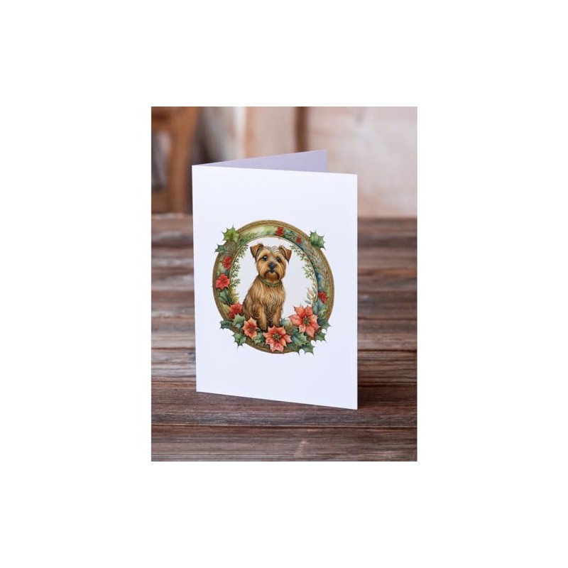 Caroline's Treasures DAC2397GCA7P Norfolk Terrier Christmas Flowers Greeting Cards Pack of 8 Blank Cards with Envelopes Whimsical A7 Size 5x7 Blank Note Cards