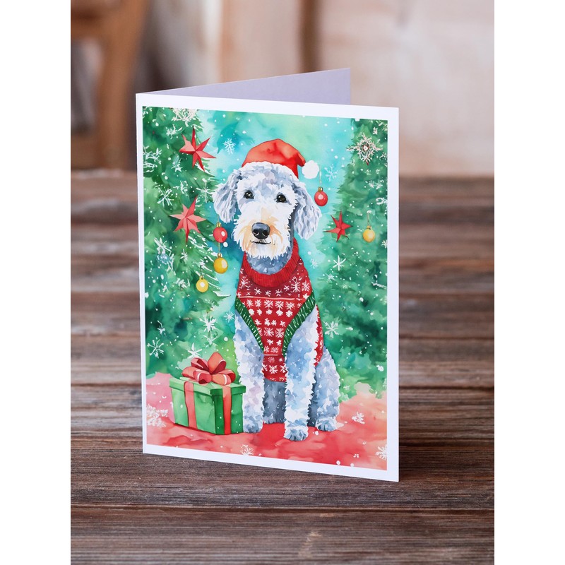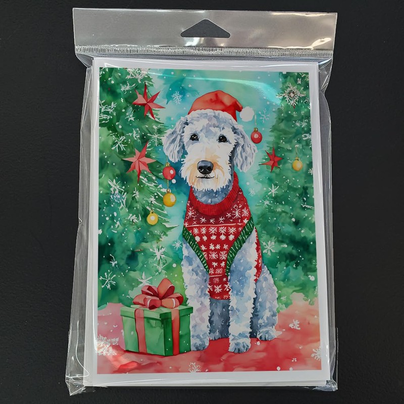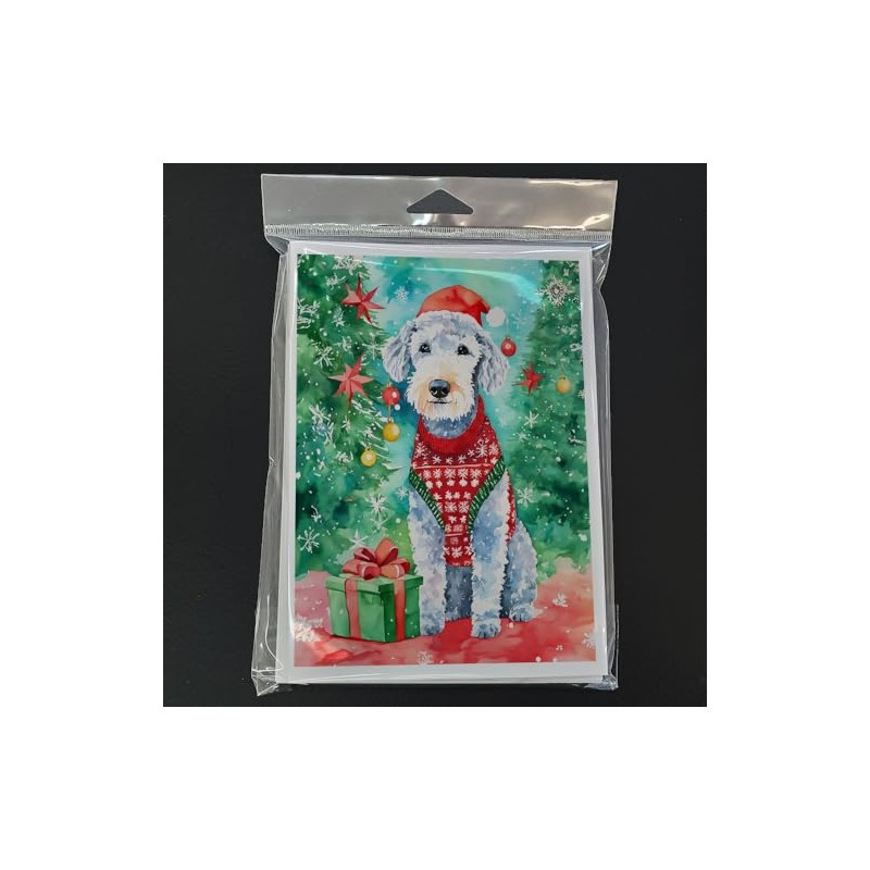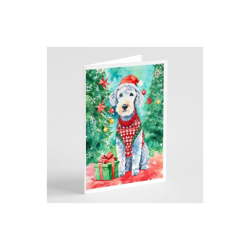 Caroline's Treasures DAC3356GCA7P Bedlington Terrier Christmas Greeting Cards Pack of 8 Blank Cards with Envelopes Whimsical A7 Size 5x7 Blank Note Cards