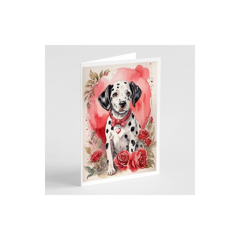 Caroline's Treasures DAC4421GCA7P Dalmatian Valentine Roses Greeting Cards Pack of 8 Blank Cards with Envelopes Whimsical A7 Size 5x7 Blank Note Cards