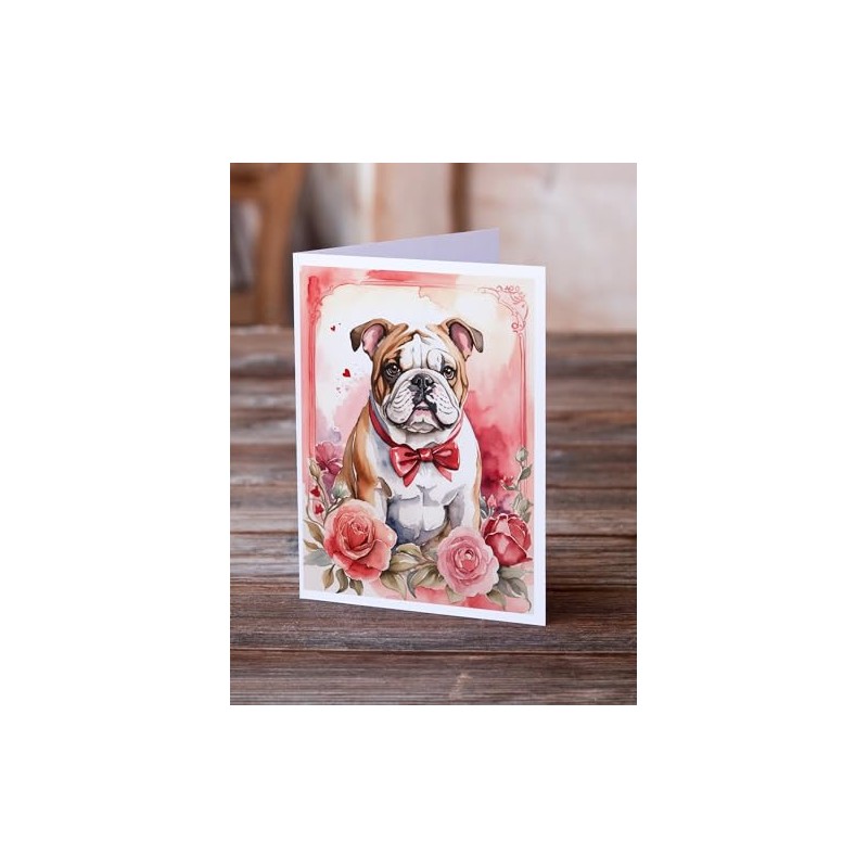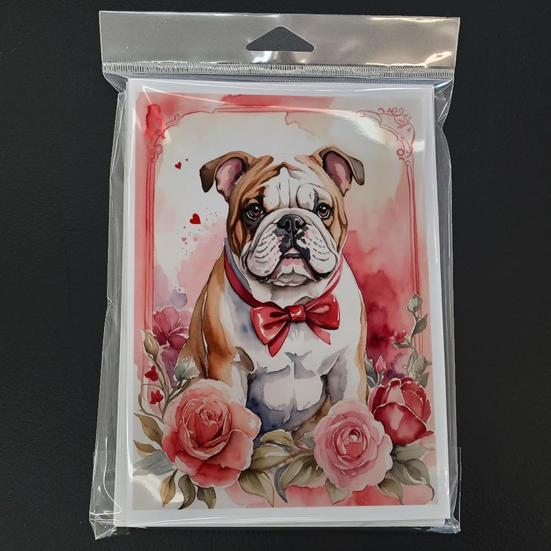 Caroline's Treasures DAC4426GCA7P English Bulldog Valentine Roses Greeting Cards Pack of 8 Blank Cards with Envelopes Whimsical A7 Size 5x7 Blank Note Cards