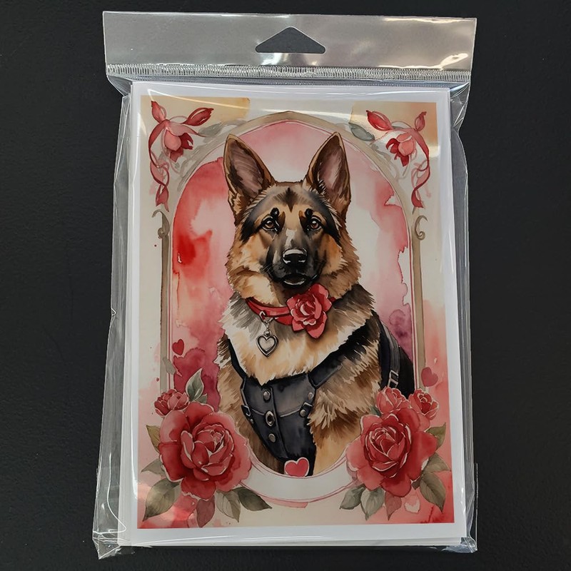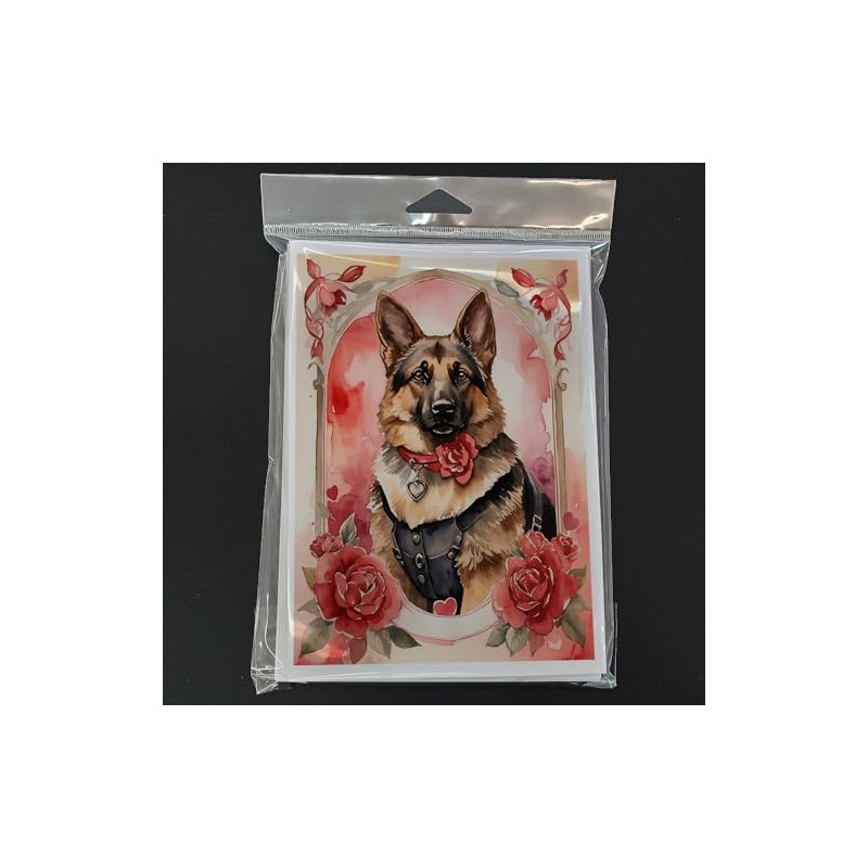 Caroline's Treasures DAC4448GCA7P German Shepherd Valentine Roses Greeting Cards Pack of 8 Blank Cards with Envelopes Whimsical A7 Size 5x7 Blank Note Cards