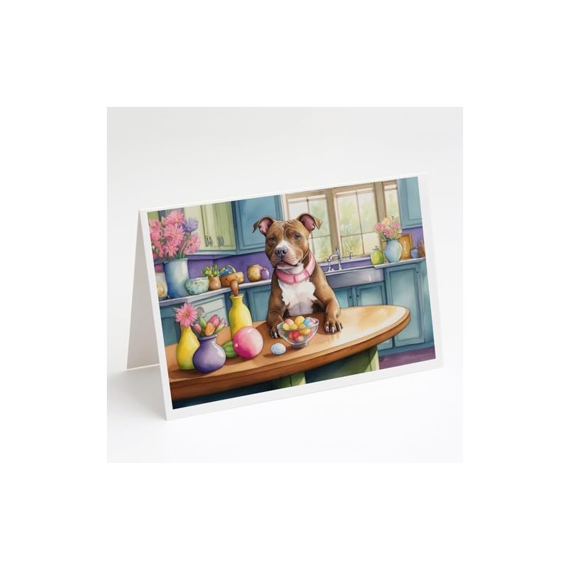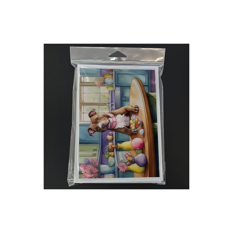 Caroline's Treasures DAC6868GCA7P Decorating Easter Pit Bull Terrier Greeting Cards Pack of 8 Blank Cards with Envelopes Whimsical A7 Size 5x7 Blank Note Cards