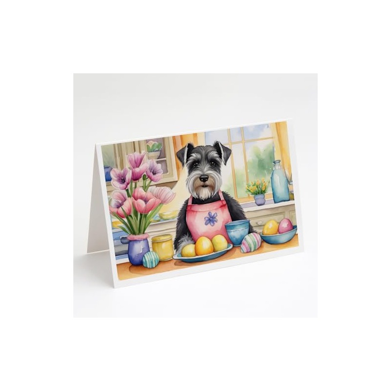 Caroline's Treasures DAC6893GCA7P Decorating Easter Schnauzer Greeting Cards Pack of 8 Blank Cards with Envelopes Whimsical A7 Size 5x7 Blank Note Cards