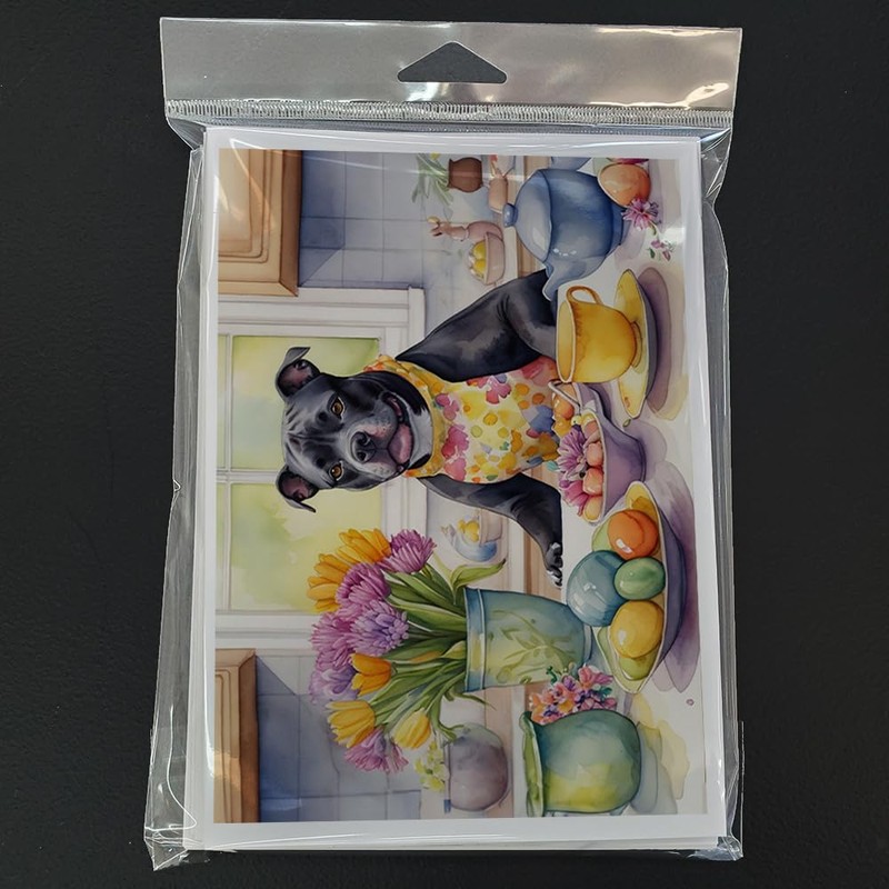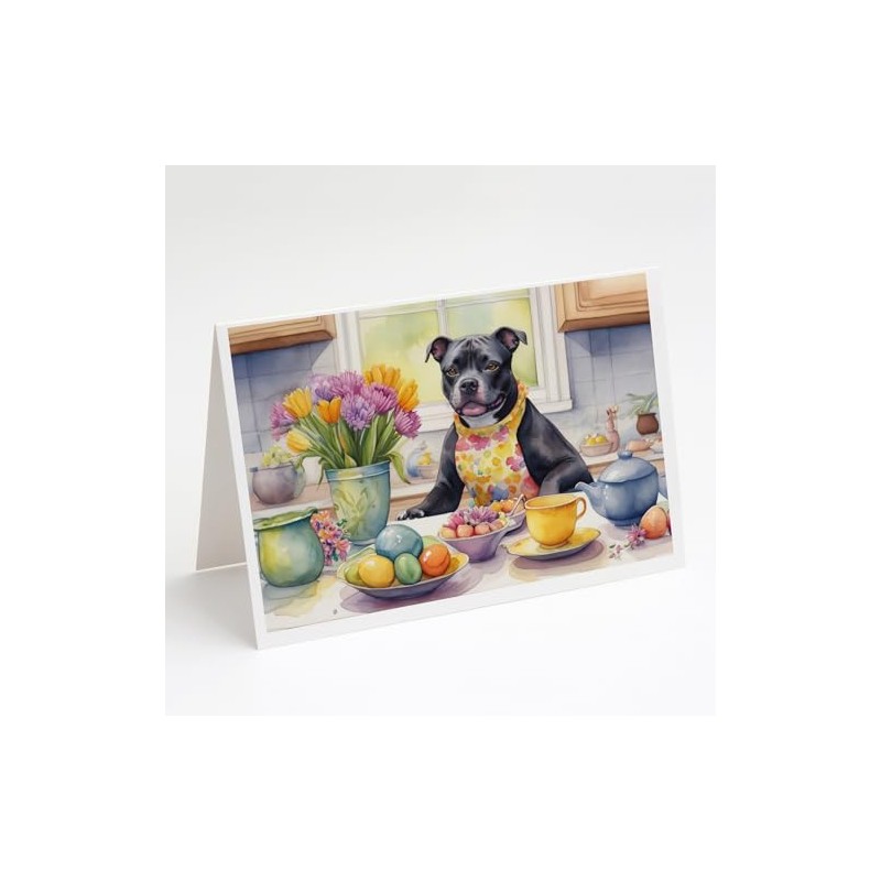 Caroline's Treasures DAC6909GCA7P Decorating Easter Staffordshire Bull Terrier Greeting Cards Pack of 8 Blank Cards with Envelopes Whimsical A7 Size 5x7 Blank Note Cards