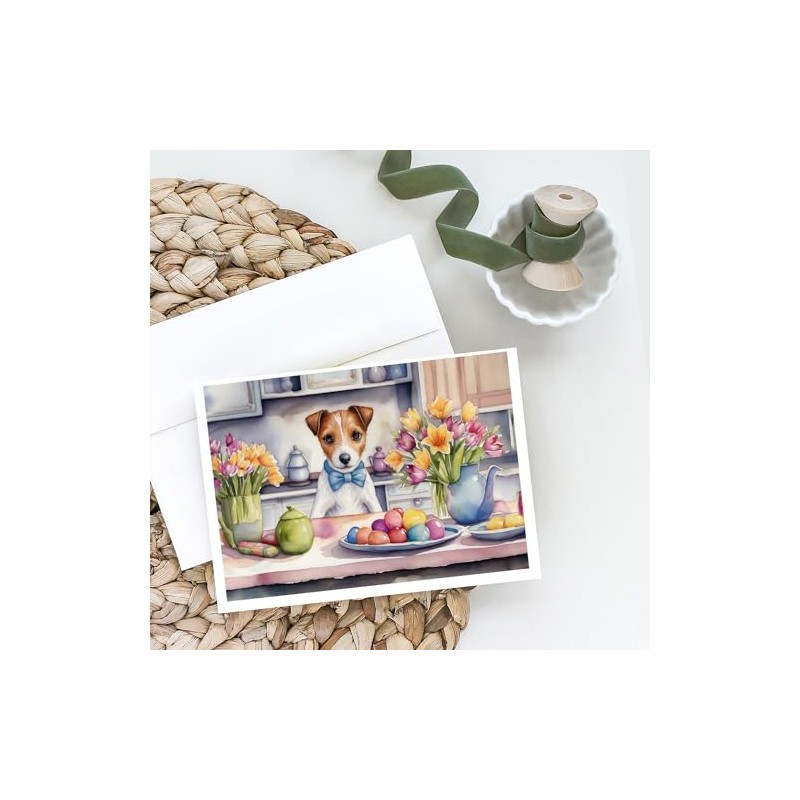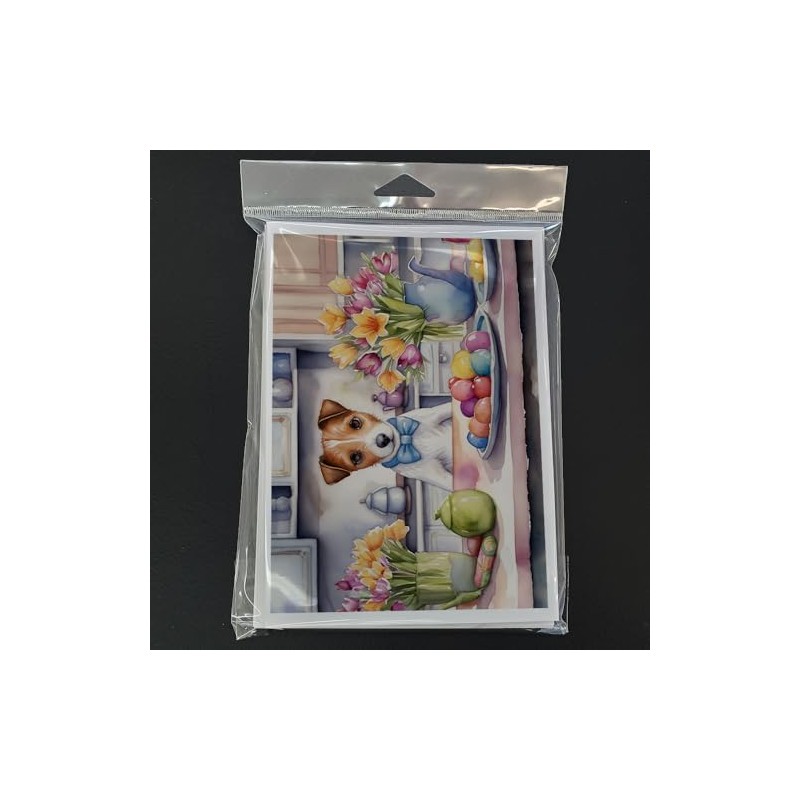 Caroline's Treasures Decorating Easter Jack Russell Terrier Greeting Cards Pack of 8 Blank Cards with Envelopes Whimsical A7 Size 5x7 Blank Note Cards