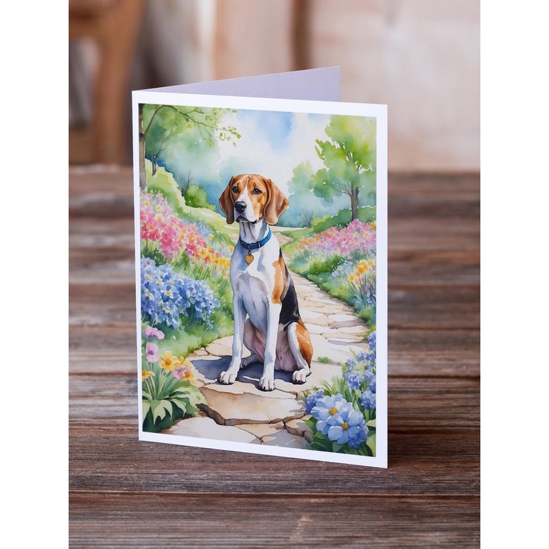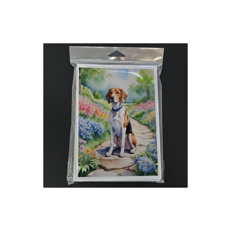 Caroline's Treasures English Foxhound Spring Path Greeting Cards Pack of 8 Blank Cards with Envelopes Whimsical A7 Size 5x7 Blank Note Cards