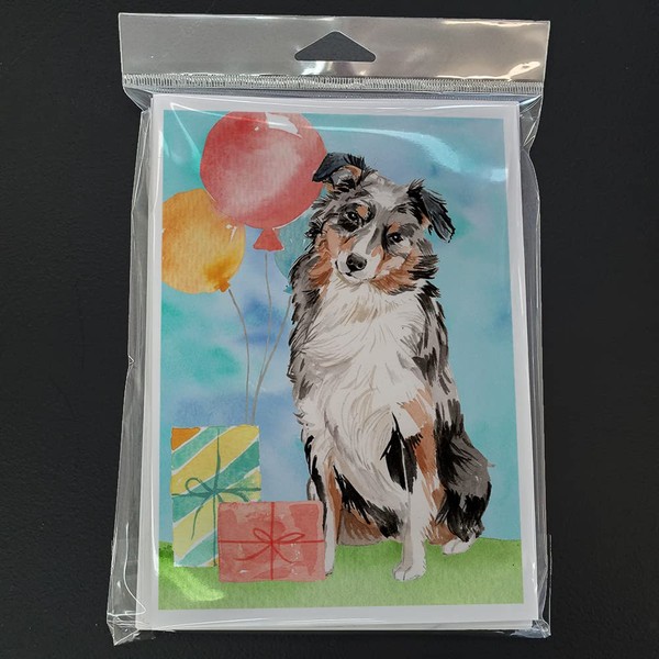 Caroline's Treasures Happy Birthday Australian Shepherd Greeting Cards and Envelopes Pack of 8