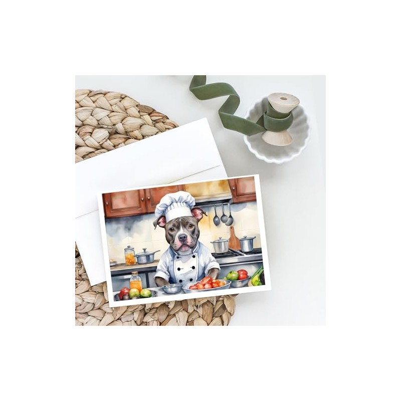 Caroline's Treasures Pit Bull Terrier The Chef Greeting Cards Pack of 8 Blank...