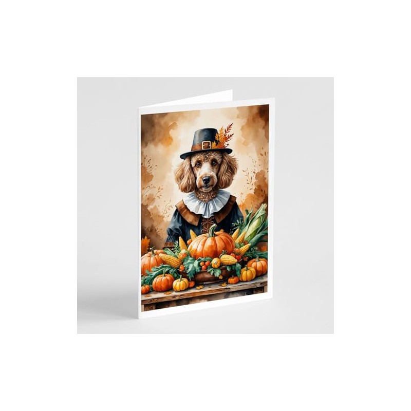 Caroline's Treasures Poodle Thanksgiving Greeting Cards Pack of 8 Blank Cards with Envelopes Whimsical A7 Size 5x7 Blank Note Cards
