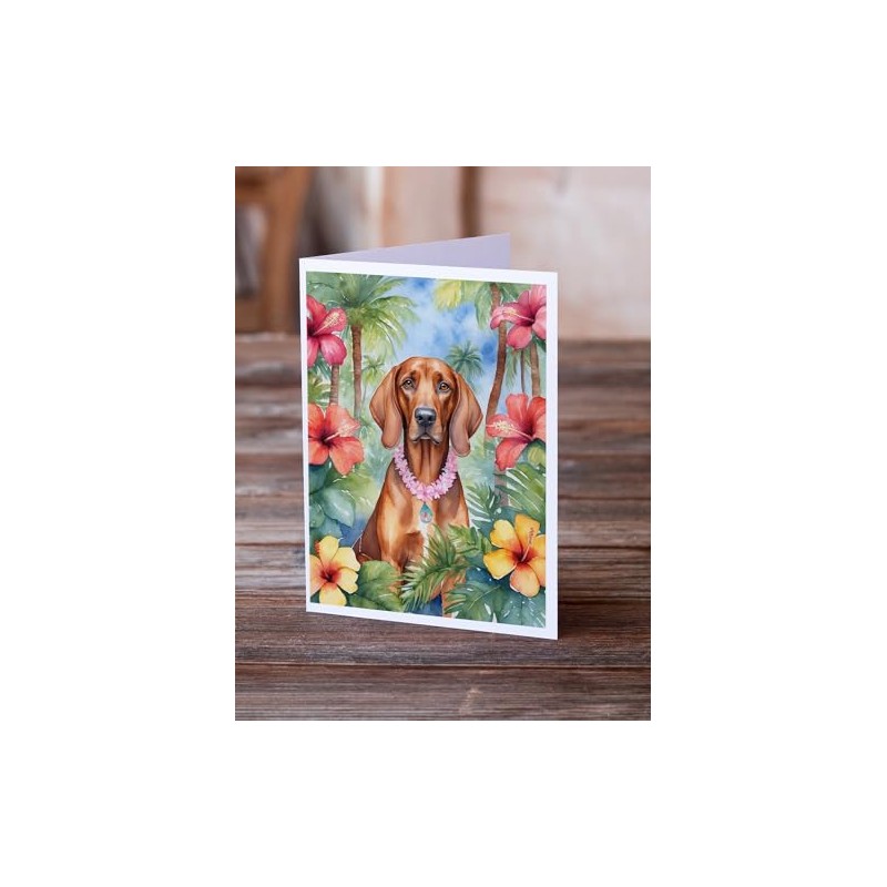 Caroline's Treasures Redbone Coonhound Luau Greeting Cards Pack of 8 Blank Cards with Envelopes Whimsical A7 Size 5x7 Blank Note Cards