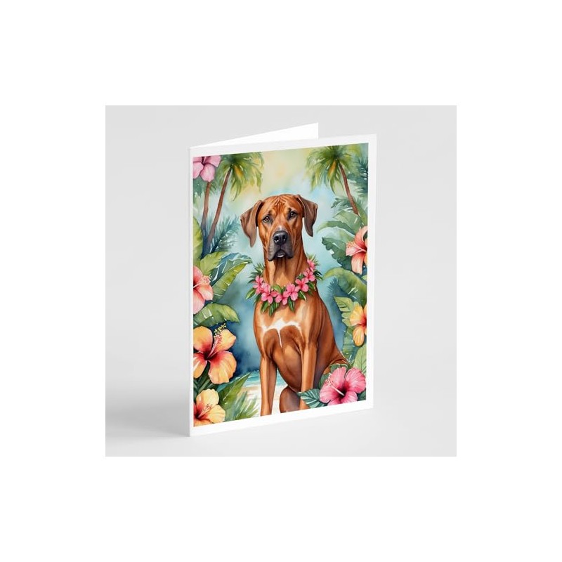Caroline's Treasures Rhodesian Ridgeback Luau Greeting Cards Pack of 8 Blank Cards with Envelopes Whimsical A7 Size 5x7 Blank Note Cards