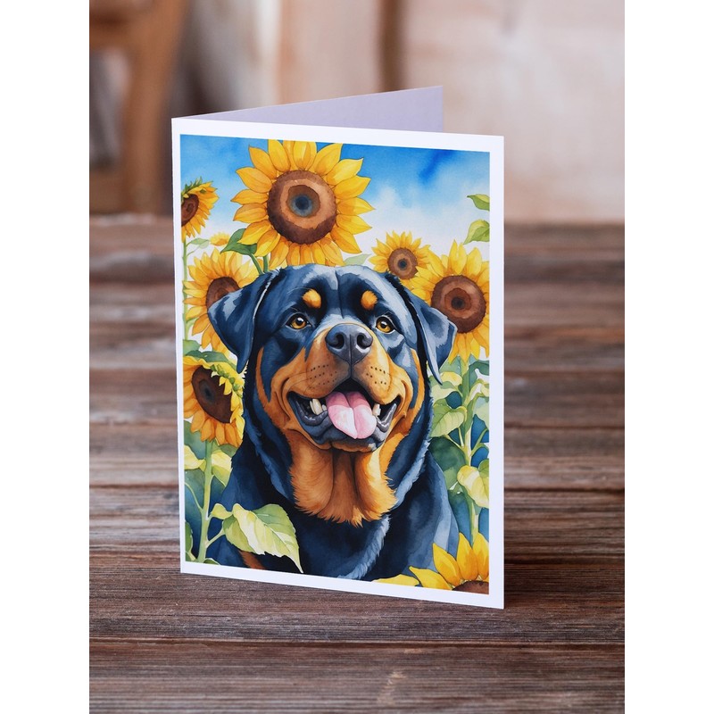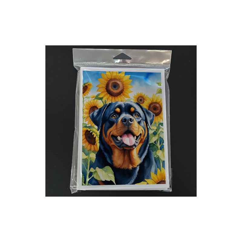 Caroline's Treasures Rottweiler in Sunflowers Greeting Cards Pack of 8 Blank Cards with Envelopes Whimsical A7 Size 5x7 Blank Note Cards
