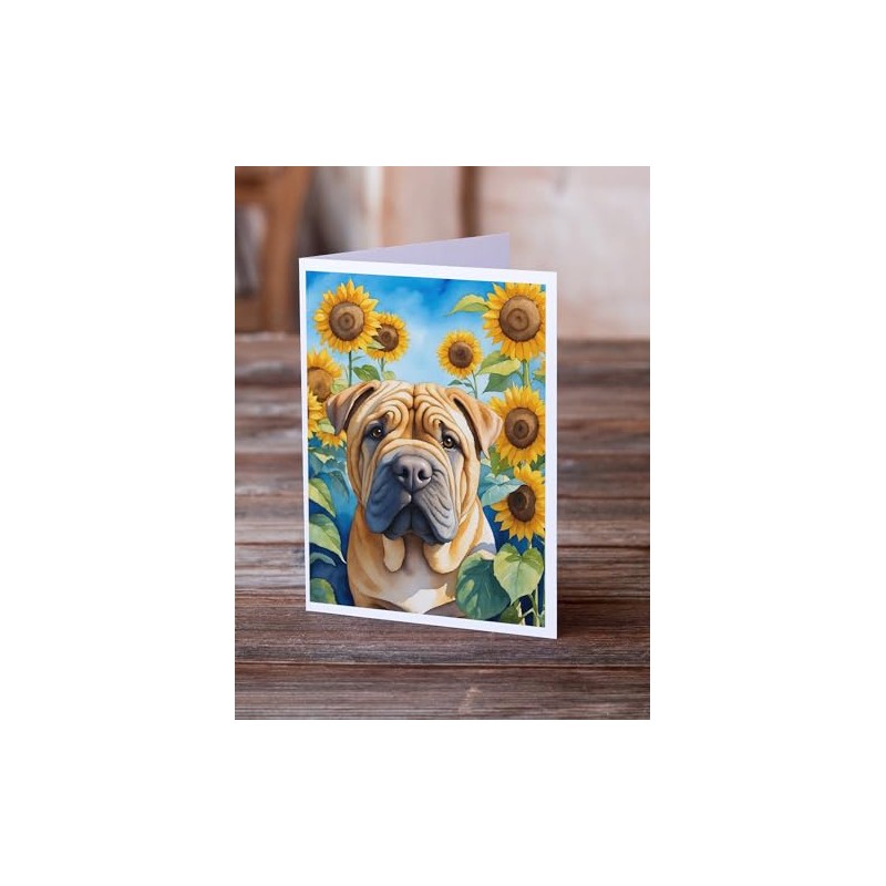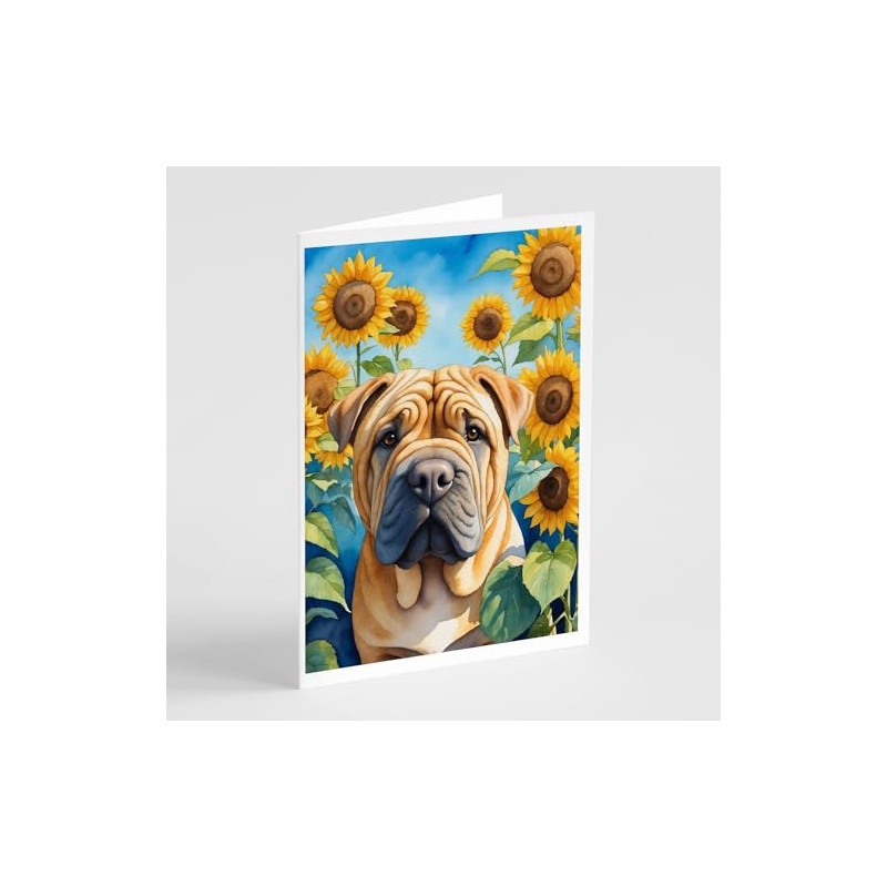 Caroline's Treasures Shar Pei in Sunflowers Greeting Cards Pack of 8 Blank Cards with Envelopes Whimsical A7 Size 5x7 Blank Note Cards