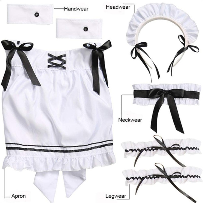 - đź’—The complete set includes: dress + bracelet x 2 + headpiece + neck ring + apron + leg ring x 2