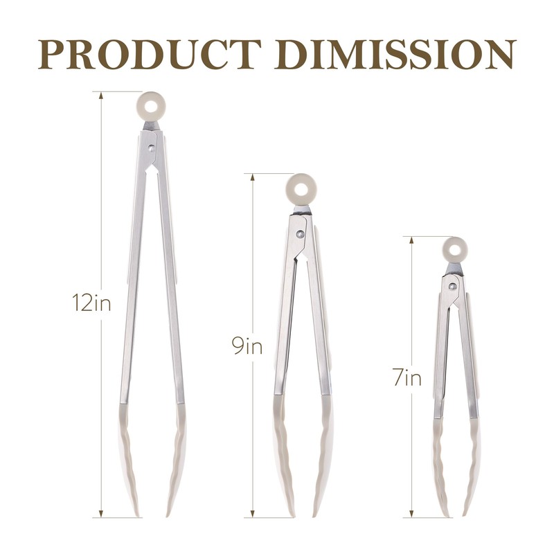 - Set Includes: This tongs for cooking comes with 3 sizes,7", 9 "and 12".The design features silicone scalloped edges, making it easy to grab any ingredients from salads to large pieces of meat, burgers and more. Dishwasher safe.