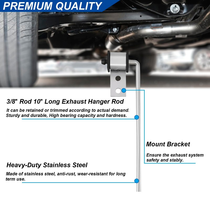 - Universal Adaptability: Without a preset shape, this hanger rod can attach various exhaust parts to most vehicle undersides.