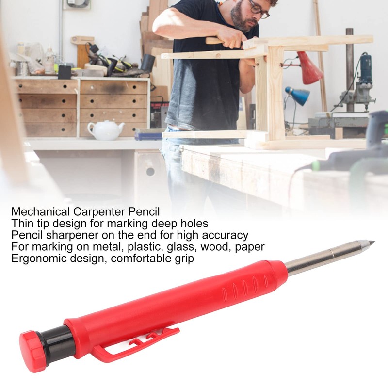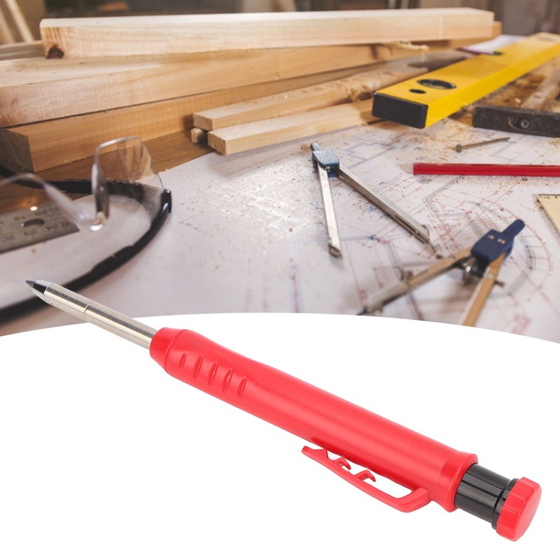 Carpenter Pencils, Construction Pencil with Sharpener Woodworking Deep Hole Pencil Deep Hole Marker Mechanical Carpenter Pencil for Metal Plastic Marking (Red)