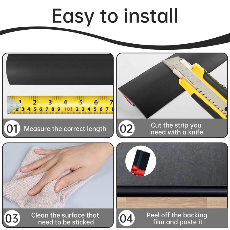 - Effortless Peel-and-Stick Installation: Peel away the red adhesive backing and press one side onto the floor while aligning the other side over carpets or thresholds (for gaps under 5mm). Achieve a secure, seamless bond in seconds.