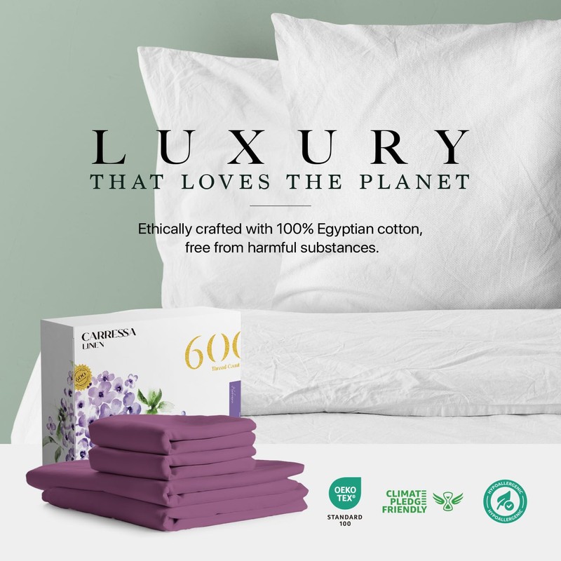 Carressa Linen California King Egyptian Cotton Sheet Sets - 600 Thread Count Cal King Cotton Sheet Set (4 PC, Plum Purple), Extra Soft, Cooling, 16" Deep Pocket Sateen Weave Luxury Hotel Bed Sheets