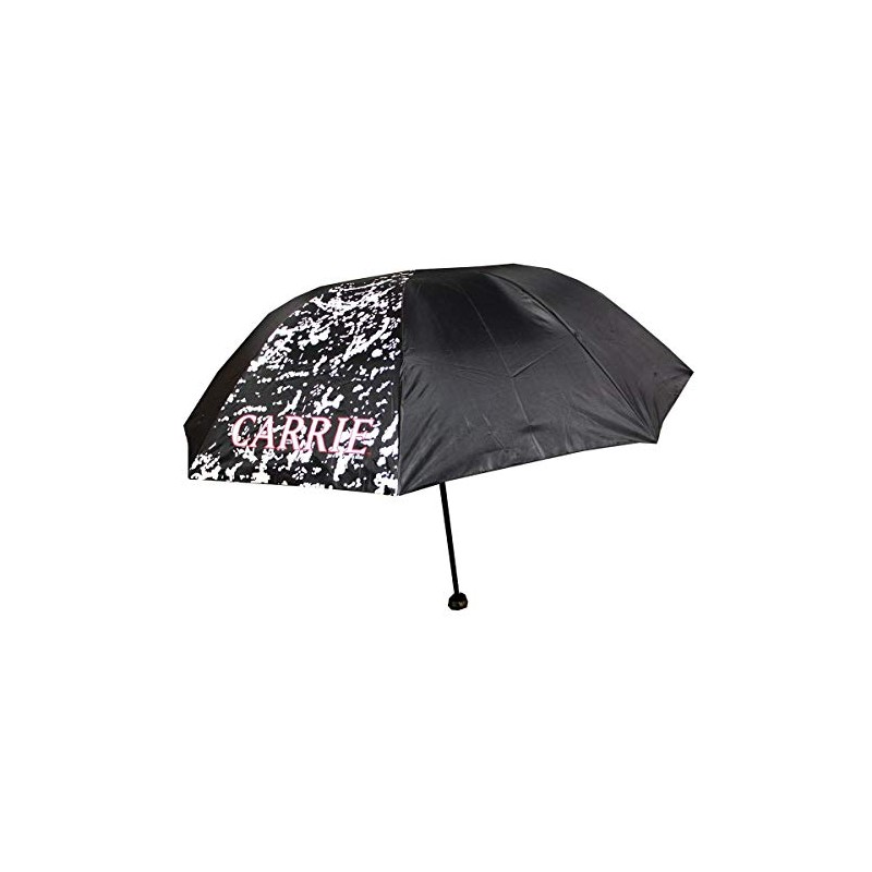 - Black umbrella features the Carrie logo and blood splattered effect.