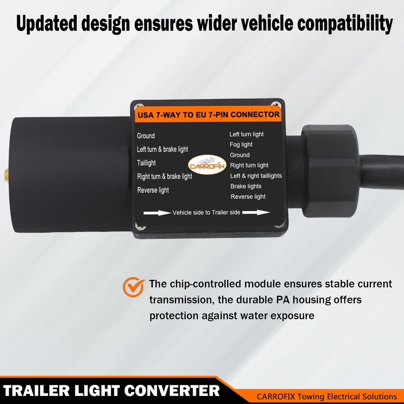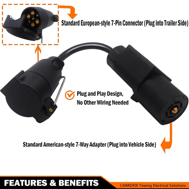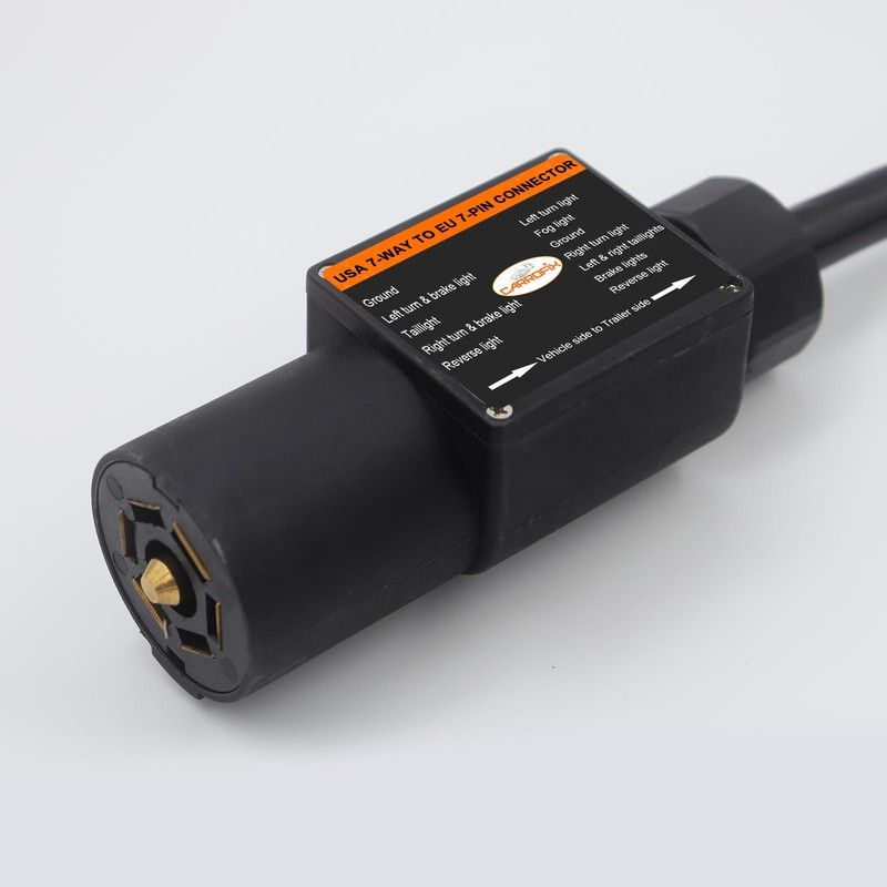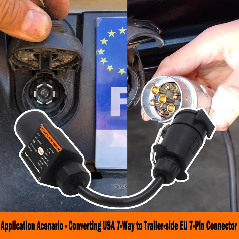 - COMPATIBILITY: Converts American-style 7-way vehicle connector to European-style 7-pin trailer connector, ensuring seamless integration between US vehicles and EU-spec trailers